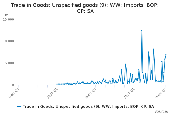 Download this time seriesTrade in Goods: Unspecified goods (9): WW: Imports: BOP: CP: SA