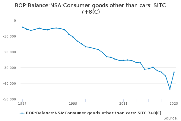 Download this time seriesBOP:Balance:NSA:Consumer goods other than cars: SITC 7+8(C)