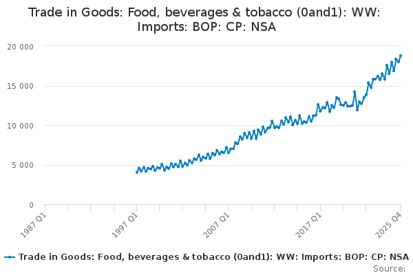 Download this time seriesTrade in Goods: Food, beverages & tobacco (0and1): WW: Imports: BOP: CP: NSA
