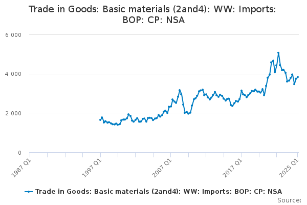 Download this time seriesTrade in Goods: Basic materials (2and4): WW: Imports: BOP: CP: NSA