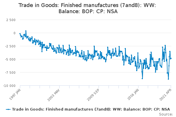 Download this time seriesTrade in Goods: Finished manufactures (7and8): WW: Balance: BOP: CP: NSA