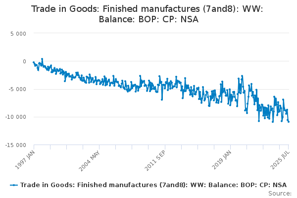 Download this time seriesTrade in Goods: Finished manufactures (7and8): WW: Balance: BOP: CP: NSA