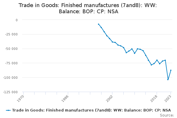 Download this time seriesTrade in Goods: Finished manufactures (7and8): WW: Balance: BOP: CP: NSA