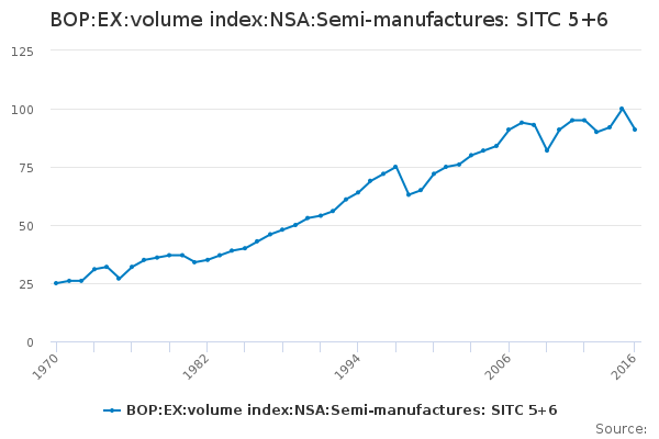 Download this time seriesBOP:EX:volume index:NSA:Semi-manufactures: SITC 5+6
