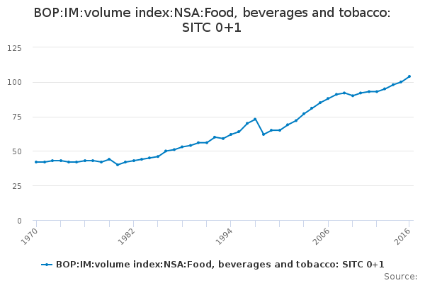 Download this time seriesBOP:IM:volume index:NSA:Food, beverages and tobacco: SITC 0+1