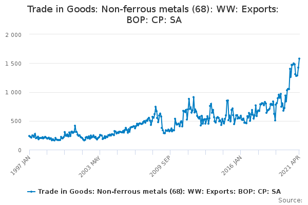 Download this time seriesTrade in Goods: Non-ferrous metals (68): WW: Exports: BOP: CP: SA