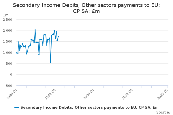 Download this time seriesSecondary Income Debits; Other sectors payments to EU: CP SA: £m