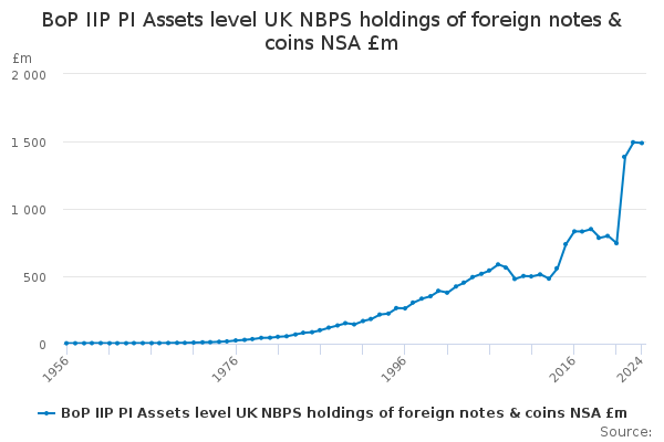 Download this time seriesBoP IIP PI Assets level UK NBPS holdings of foreign notes & coins NSA £m