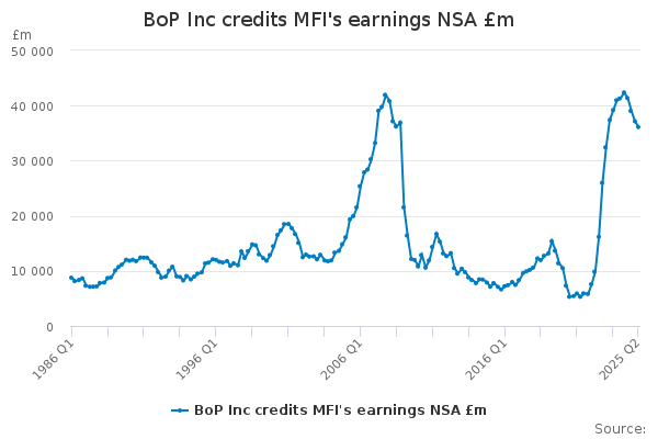 Download this time seriesBoP Inc credits MFI's earnings NSA £m