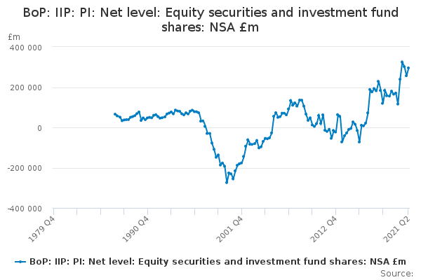 Download this time seriesBoP: IIP: PI: Net level: Equity securities and investment fund shares: NSA £m