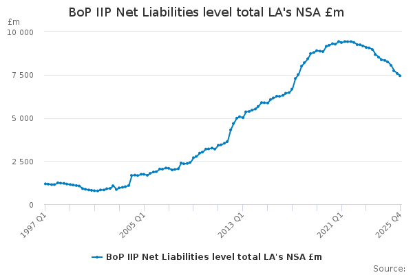 Download this time seriesBoP IIP Net Liabilities level total LA's NSA £m