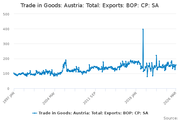 Download this time seriesTrade in Goods: Austria: Total: Exports: BOP: CP: SA