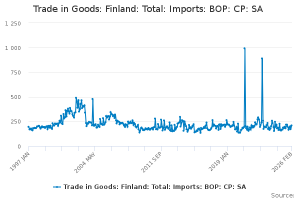 Download this time seriesTrade in Goods: Finland: Total: Imports: BOP: CP: SA