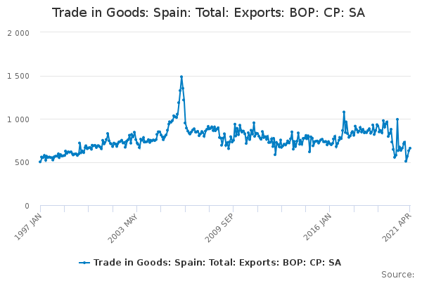 Download this time seriesTrade in Goods: Spain: Total: Exports: BOP: CP: SA