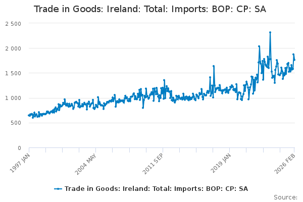 Download this time seriesTrade in Goods: Ireland: Total: Imports: BOP: CP: SA