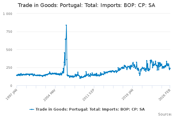 Download this time seriesTrade in Goods: Portugal: Total: Imports: BOP: CP: SA