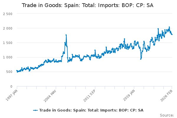 Download this time seriesTrade in Goods: Spain: Total: Imports: BOP: CP: SA