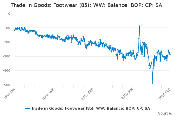 Download this time seriesTrade in Goods: Footwear (85): WW: Balance: BOP: CP: SA