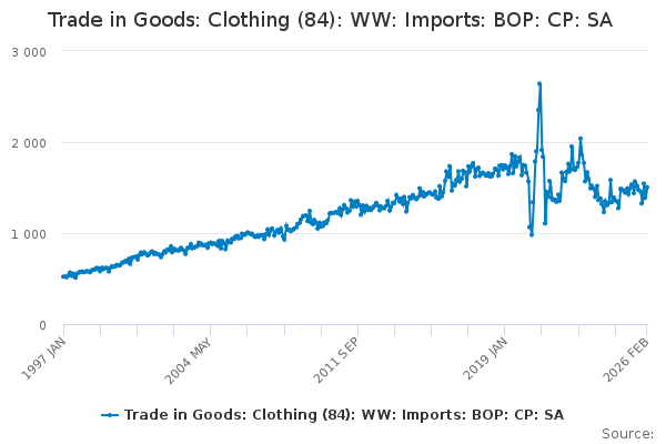 Download this time seriesTrade in Goods: Clothing (84): WW: Imports: BOP: CP: SA