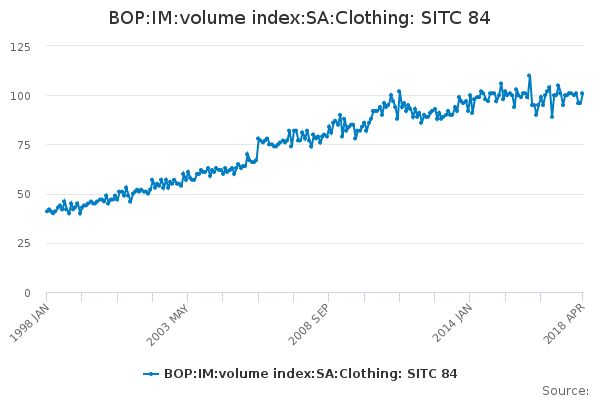Download this time seriesBOP:IM:volume index:SA:Clothing: SITC 84