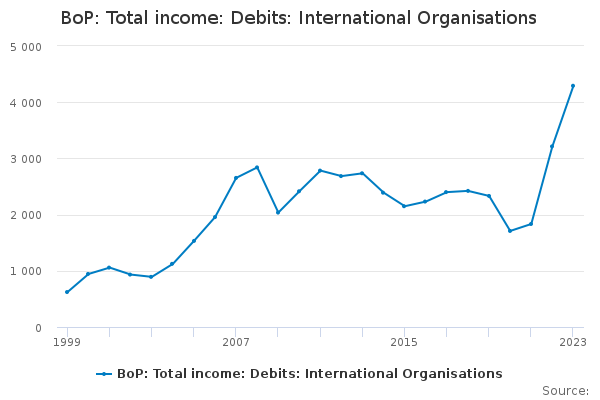 Download this time seriesBoP: Total income: Debits: International Organisations