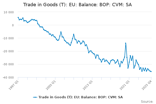 Download this time seriesTrade in Goods (T): EU: Balance: BOP: CVM: SA