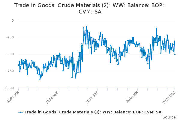 Download this time seriesTrade in Goods: Crude Materials (2): WW: Balance: BOP: CVM: SA