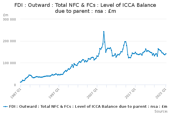 Download this time seriesFDI : Outward : Total NFC & FCs : Level of ICCA Balance due to parent : nsa : £m
