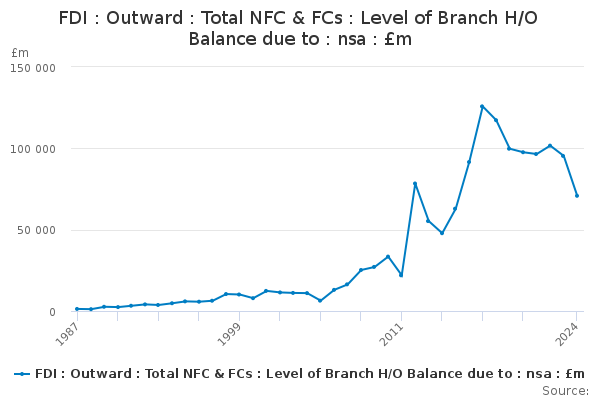 Download this time seriesFDI : Outward : Total NFC & FCs : Level of Branch H/O Balance due to : nsa : £m