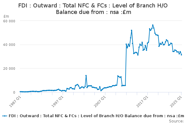 Download this time seriesFDI : Outward : Total NFC & FCs : Level of Branch H/O Balance due from : nsa :£m