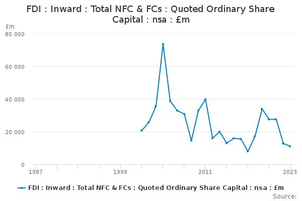 Download this time seriesFDI : Inward : Total NFC & FCs : Quoted Ordinary Share Capital : nsa : £m