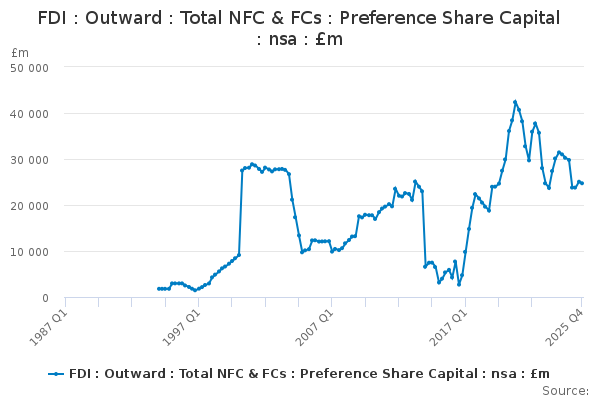 Download this time seriesFDI : Outward : Total NFC & FCs : Preference Share Capital : nsa : £m