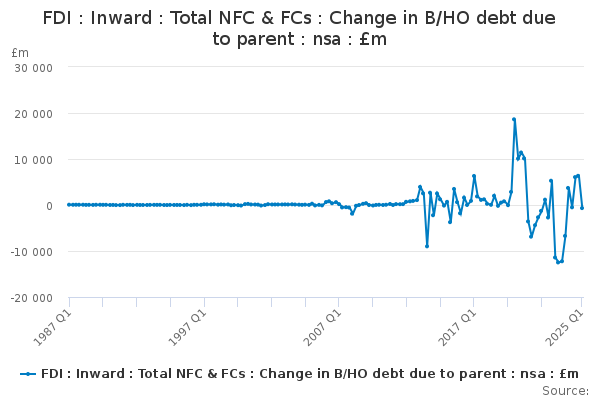 Download this time seriesFDI : Inward : Total NFC & FCs : Change in B/HO debt due to parent : nsa : £m