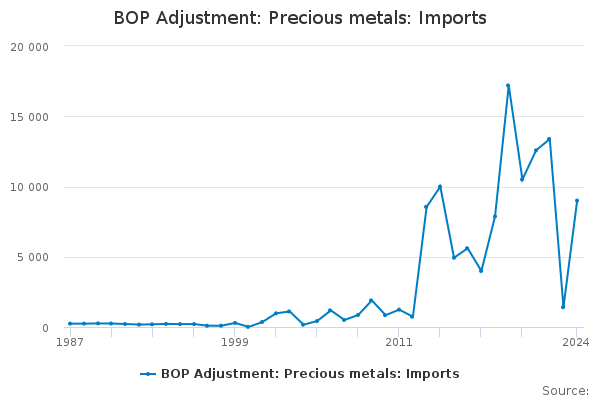 Download this time seriesBOP Adjustment: Precious metals: Imports