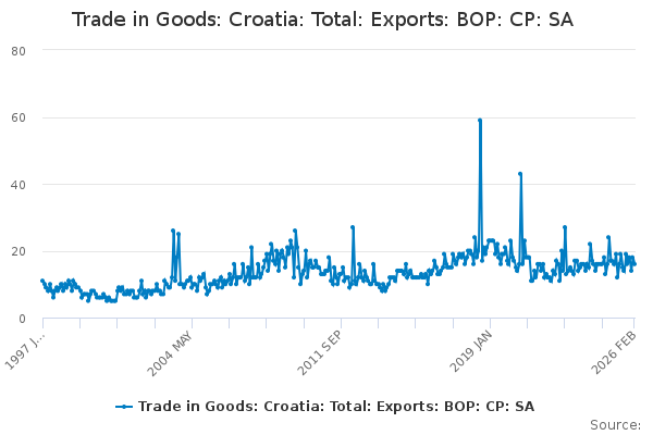 Download this time seriesTrade in Goods: Croatia: Total: Exports: BOP: CP: SA