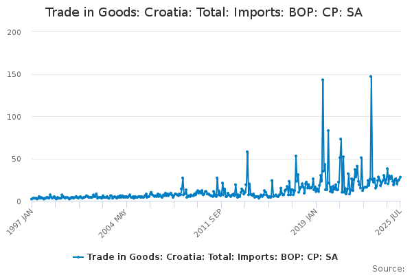 Download this time seriesTrade in Goods: Croatia: Total: Imports: BOP: CP: SA