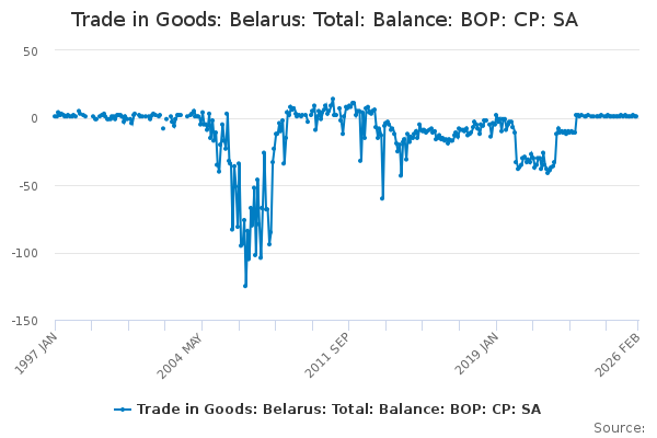 Download this time seriesTrade in Goods: Belarus: Total: Balance: BOP: CP: SA
