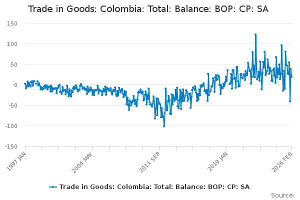 Download this time seriesTrade in Goods: Colombia: Total: Balance: BOP: CP: SA