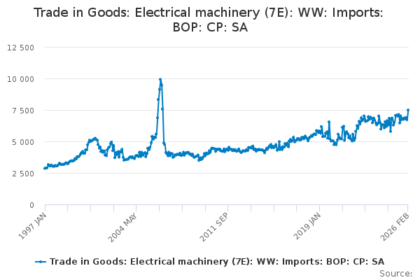 Download this time seriesTrade in Goods: Electrical machinery (7E): WW: Imports: BOP: CP: SA