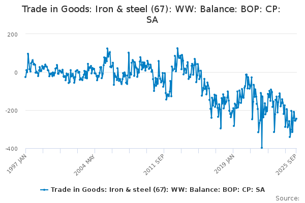 Download this time seriesTrade in Goods: Iron & steel (67): WW: Balance: BOP: CP: SA