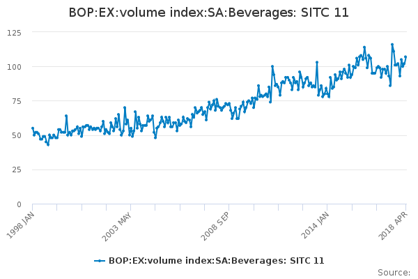 Download this time seriesBOP:EX:volume index:SA:Beverages: SITC 11