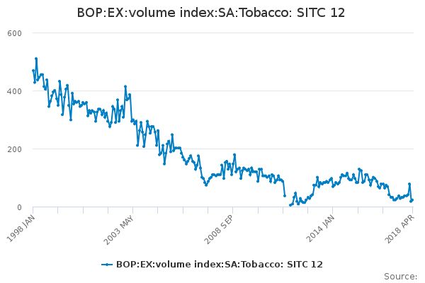 Download this time seriesBOP:EX:volume index:SA:Tobacco: SITC 12