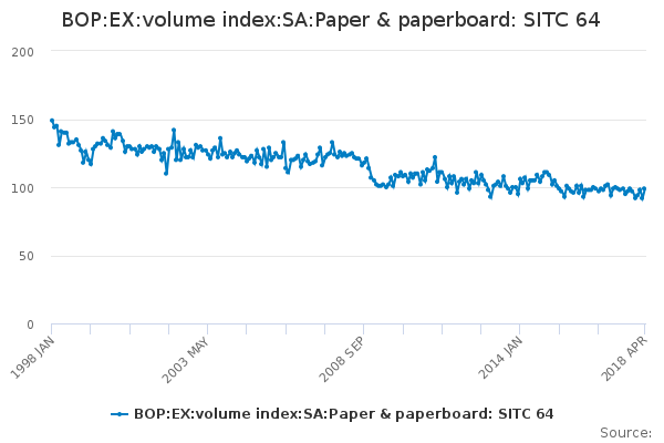 Download this time seriesBOP:EX:volume index:SA:Paper & paperboard: SITC 64