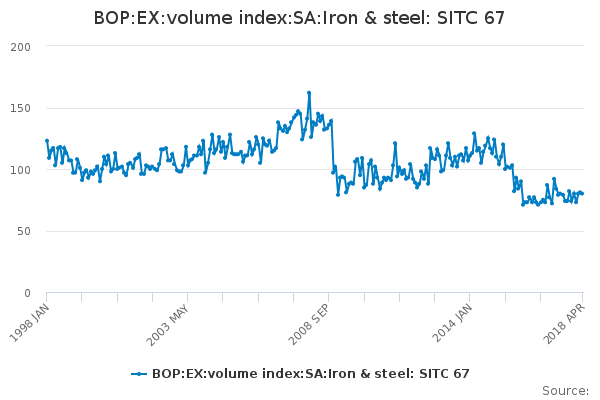 Download this time seriesBOP:EX:volume index:SA:Iron & steel: SITC 67