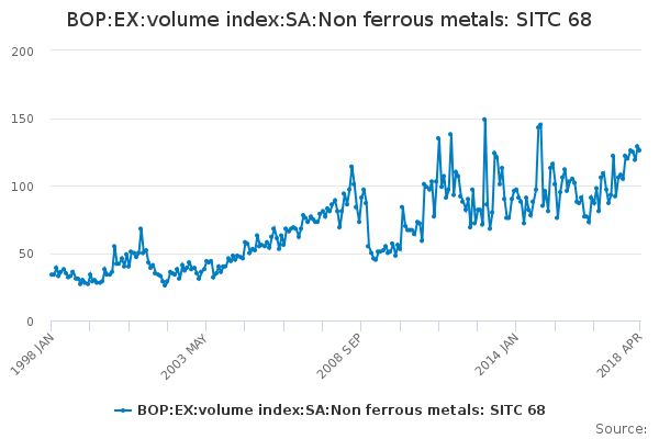 Download this time seriesBOP:EX:volume index:SA:Non ferrous metals: SITC 68