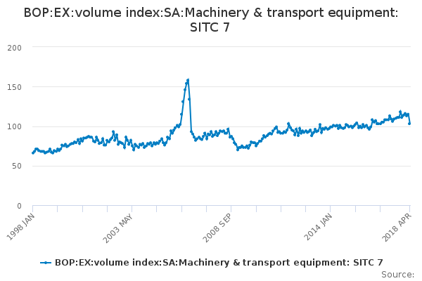 Download this time seriesBOP:EX:volume index:SA:Machinery & transport equipment: SITC 7