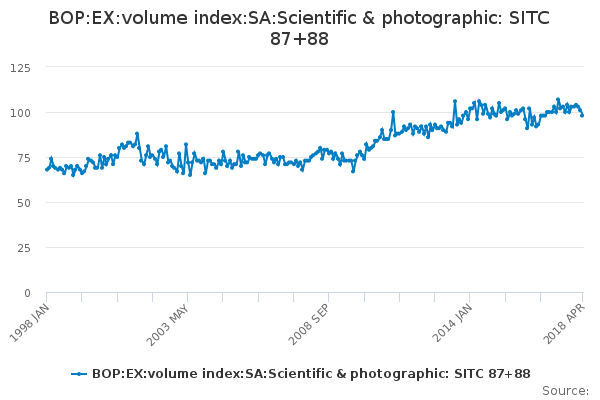 Download this time seriesBOP:EX:volume index:SA:Scientific & photographic: SITC 87+88
