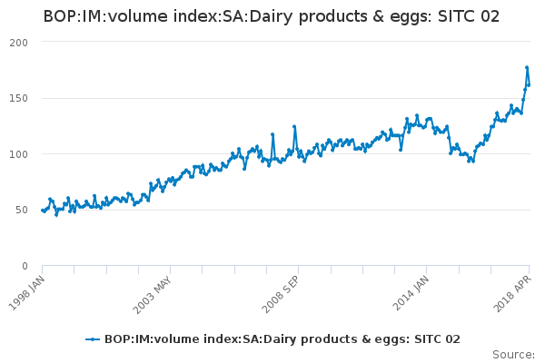 Download this time seriesBOP:IM:volume index:SA:Dairy products & eggs: SITC 02
