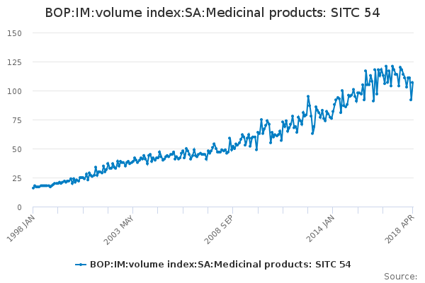 Download this time seriesBOP:IM:volume index:SA:Medicinal products: SITC 54