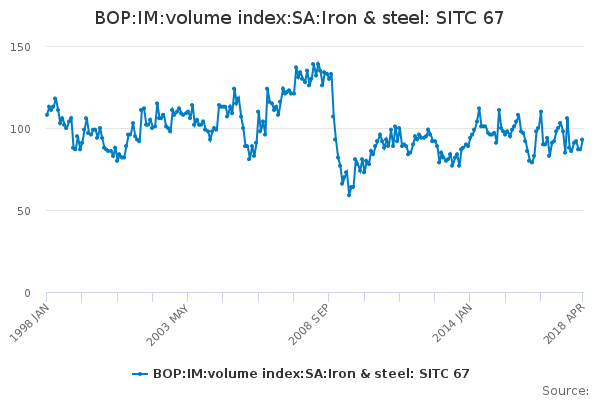 Download this time seriesBOP:IM:volume index:SA:Iron & steel: SITC 67